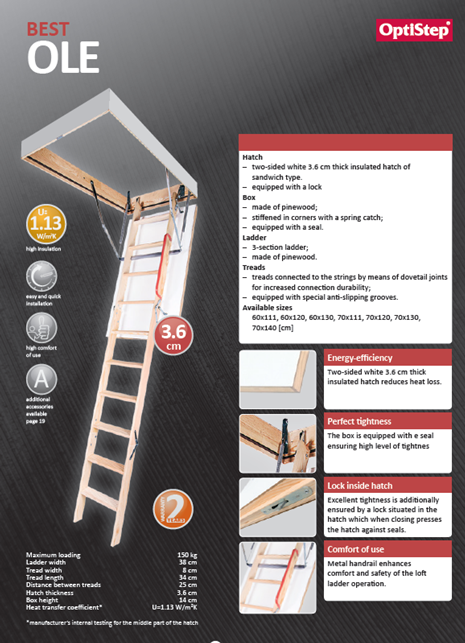 De ladder is op het bovenste trapdeel voorzien van een leuning. Levering incl. bedieningsstok om het luik voorzien van slot te openen.